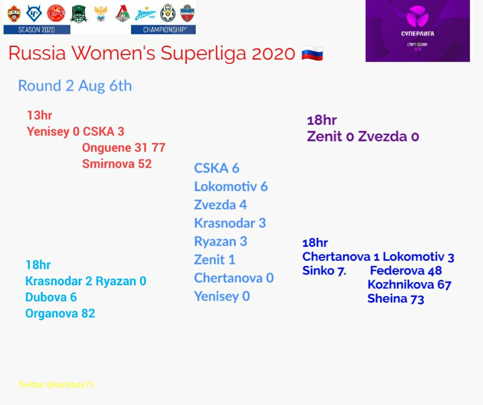 #RussiaWomensSuperliga 🇷🇺 Rd 2
