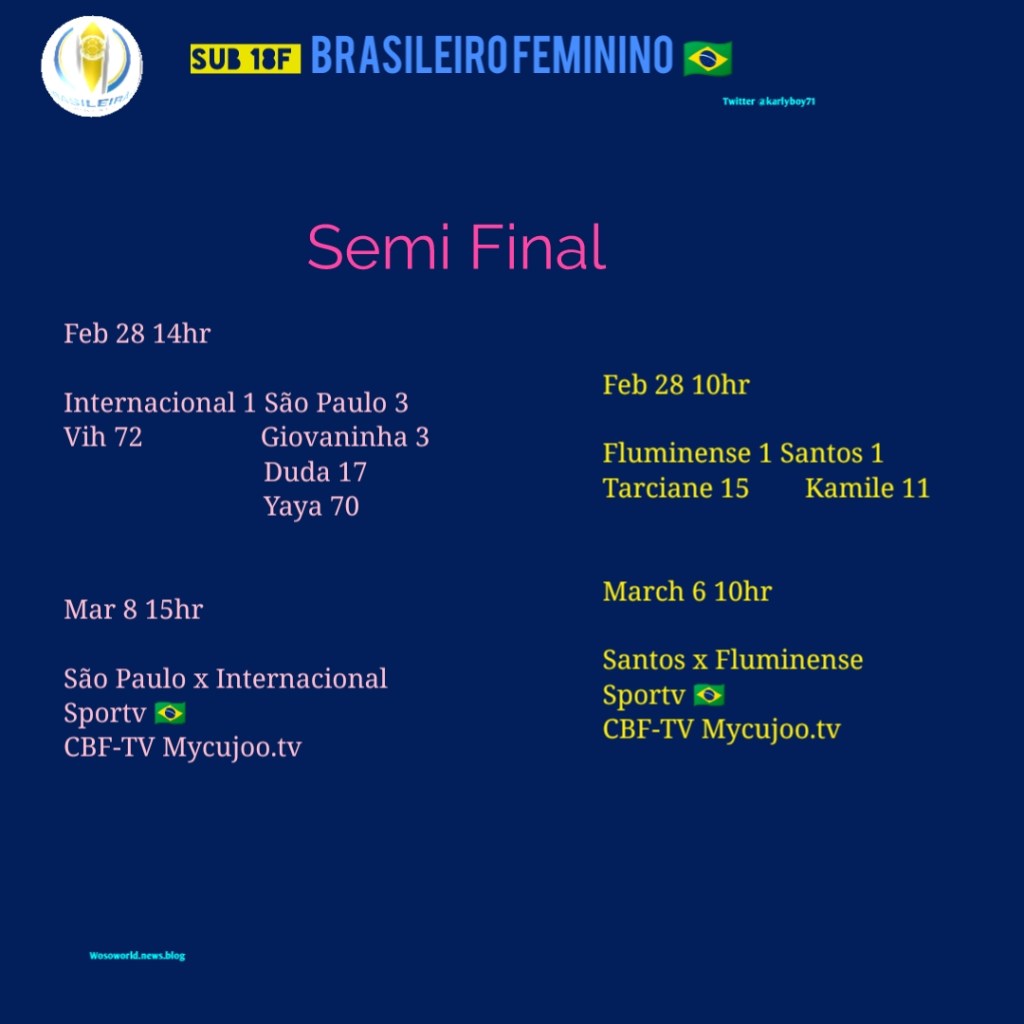 #BrasileiroFeminino 2020 🇧🇷 #Sub18F Semi Final first leg