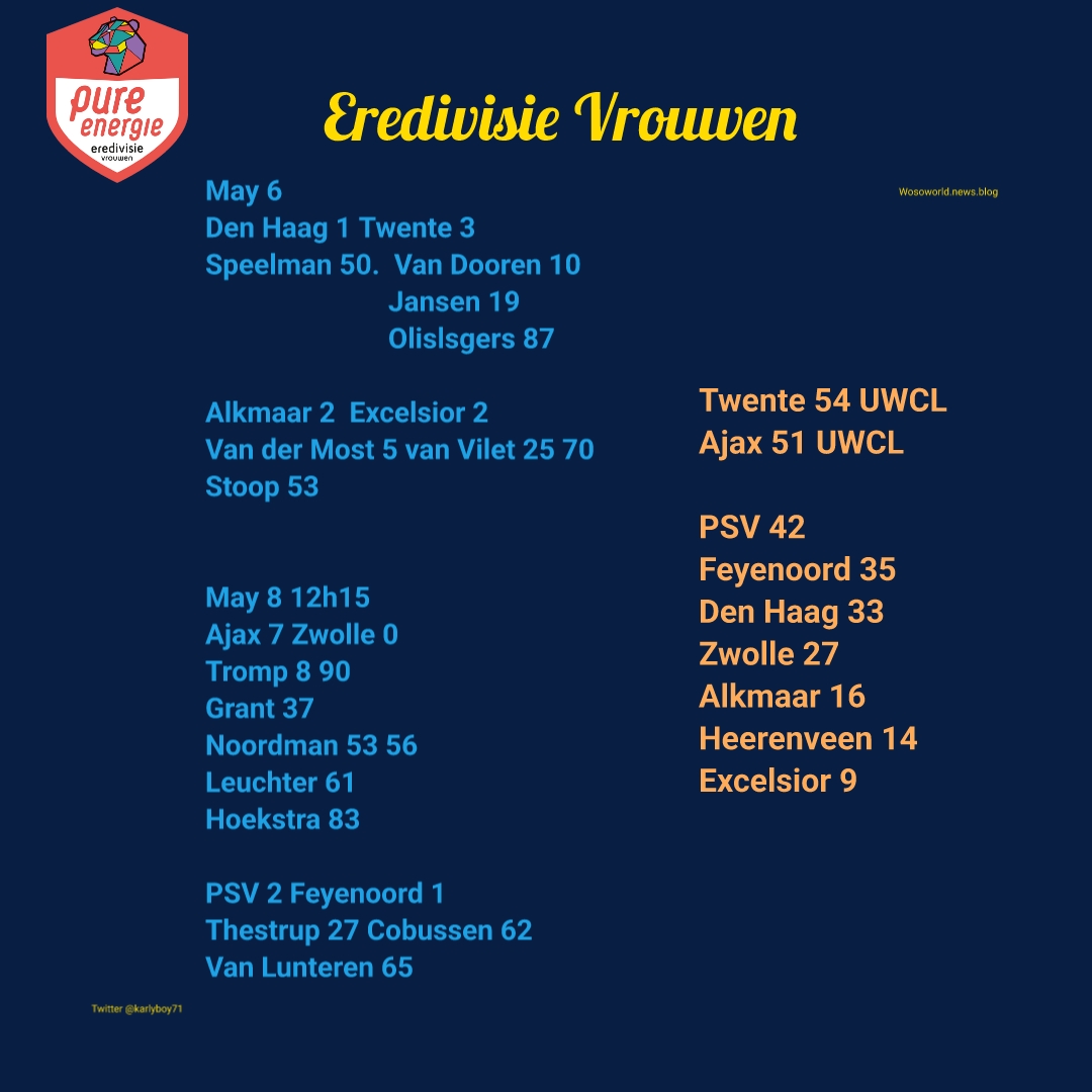 Ajax stormed to a 7-0 victory to seal there return to the UWCL in the 2022-23 edition, Nikita Tromps brace leading the way in a dominant display.. Twente won Friday evening 3-1 at Den Haag to remain three points clear at the top of the table with two games remaining.