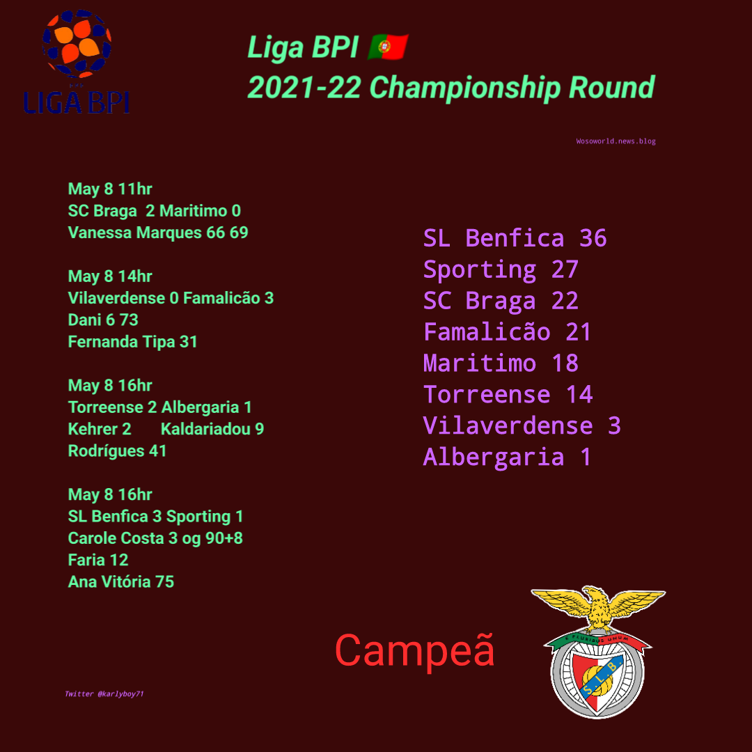 SL Benfica retained the title in Portugal in front of a league record 14 221 attendance defeating nearest and arch rivals Sporting 3-1. SL Benfica dominated from the outset Carole Costa struck in the third minute and Faria doubled the advantage in the 12th minute a low shot give Sporting keeper Doris Bacic no chance, Ana Vitória sealed the victory in the 75th minute to the delight of the home crowd.