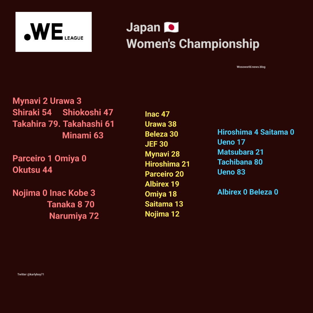 Inac Kobe finally sealed the inaugural WE League title in Japan as they won 3-0 at Nojima, Tanaka scoring a double to spark the celebrations