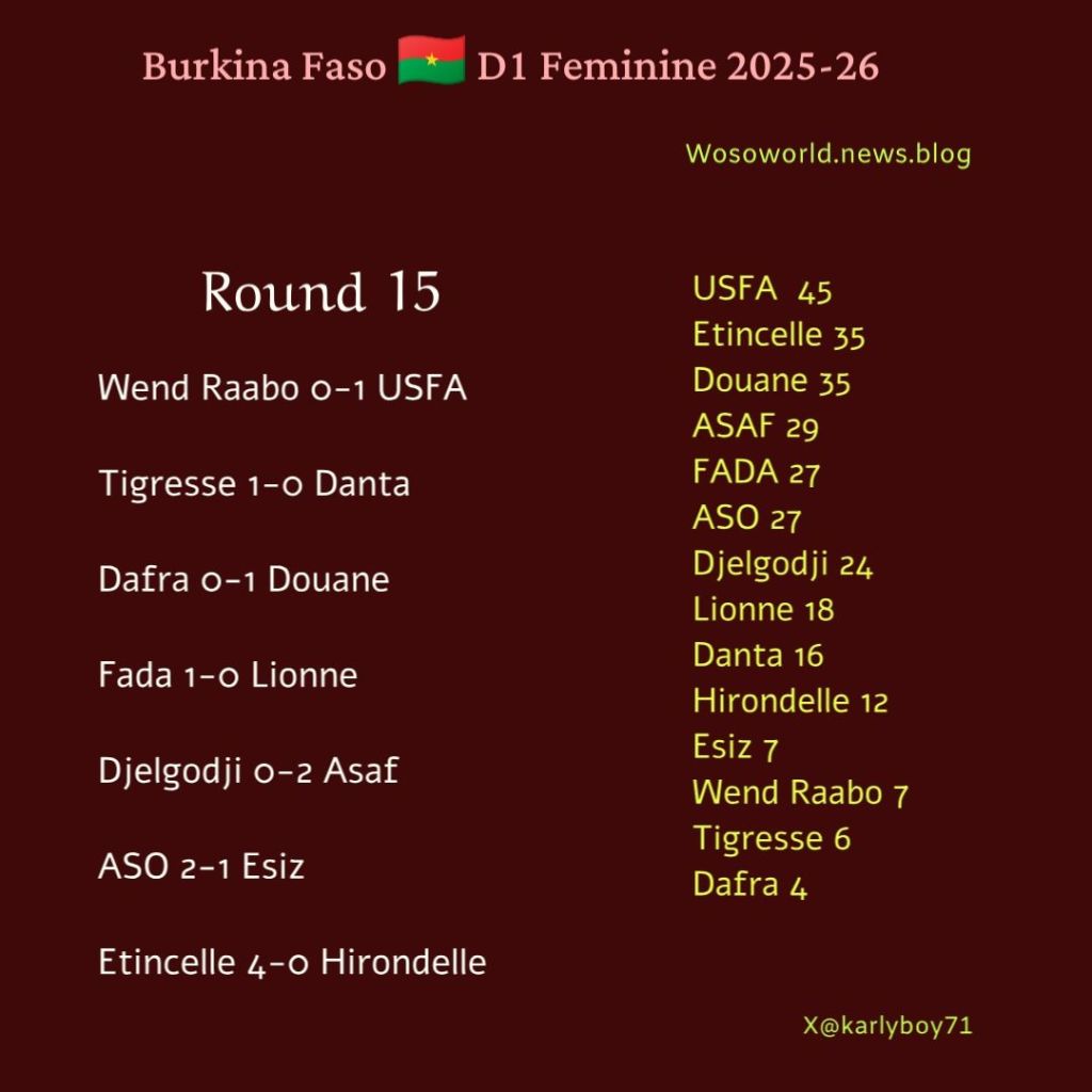 Comfort Yeboah struck a 67th minute winner to maintain USFA’s 100% record moving onto 45pts from 15 games holding a 10pt advantage over Etincelle who beat Hirondelle 4-0.