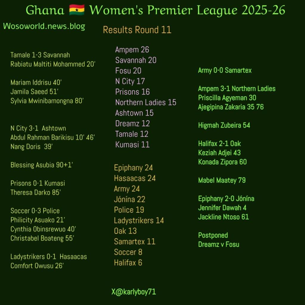 Epiphany took over at the top of a enthralling South Section with Jennifer Dawah and Jackline Ntoso scoring the goals in a 2-0 win over Jónína. Hasaacas go second in a three way tie on goal differencial from Army . Comfort Owusu earned Hasaacas a 1-0 win over Ladystrikers as Army were held to a goalless draw by Samartex.