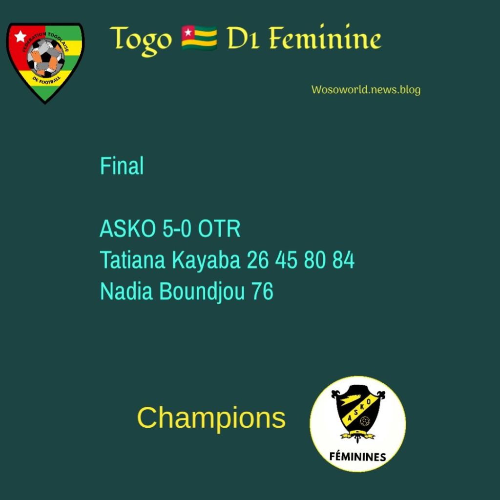 ASKO retained the title in Togo over powering OTR 5-0 in the final with a dominant display. Tatiana Kayaba fired a impressive quadruple with calm finishing and Nadia Boundjou scoring the goals.