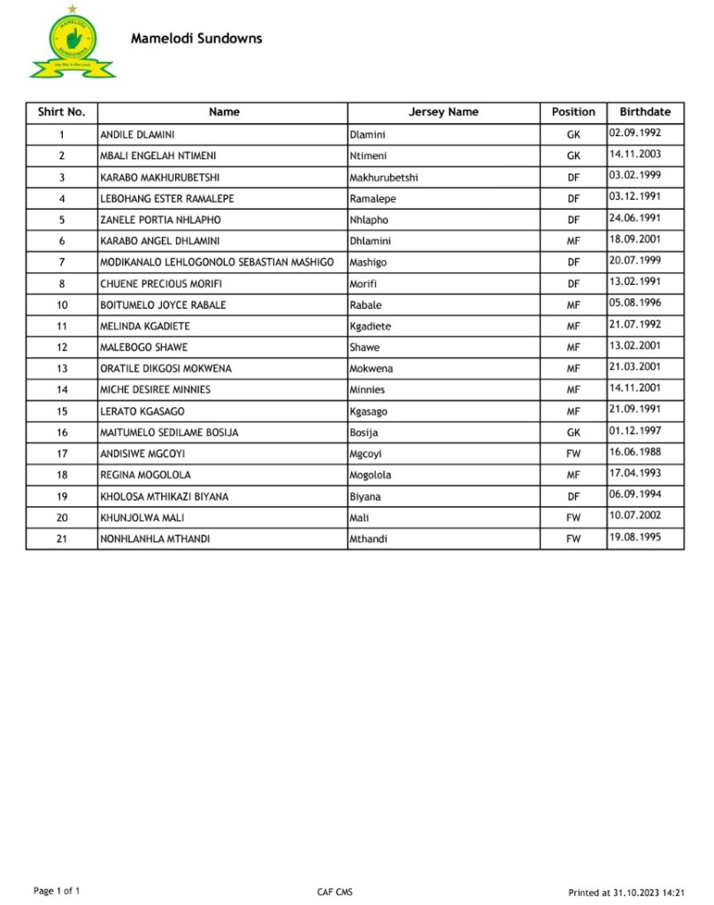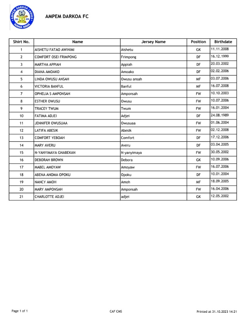 Provisional squad list for the CAF Women’s Champions League have been released . The tournament commences in Côte D’ivoire on November 5th and run through to November 19