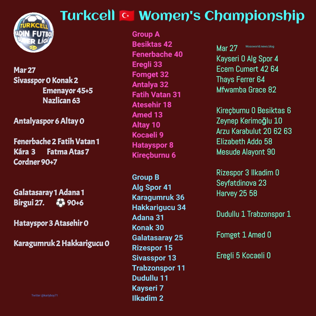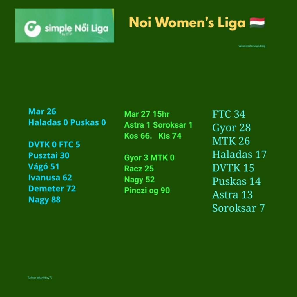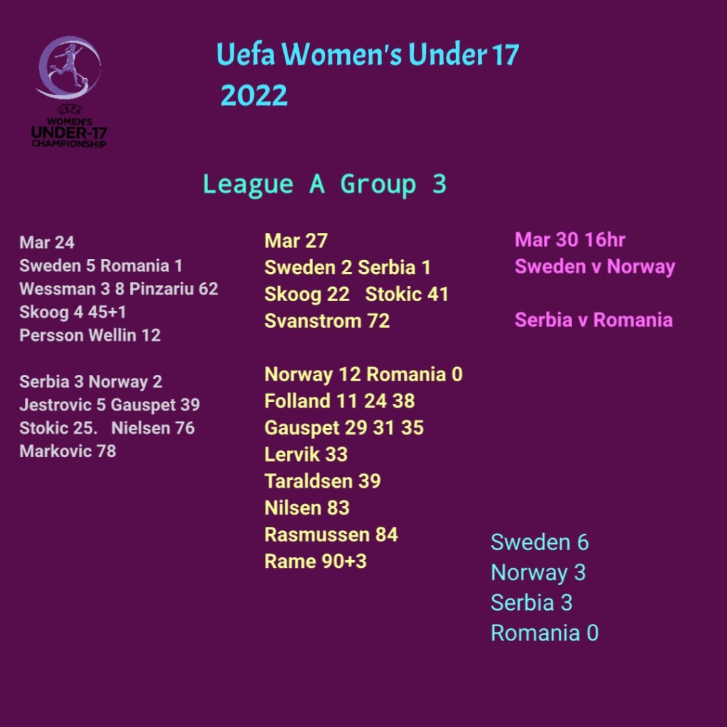 Women’s Football Results March 25-27