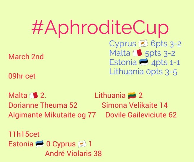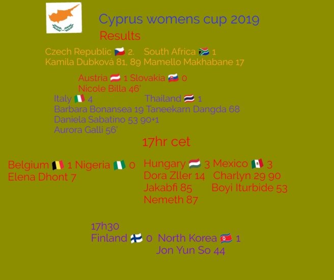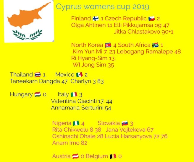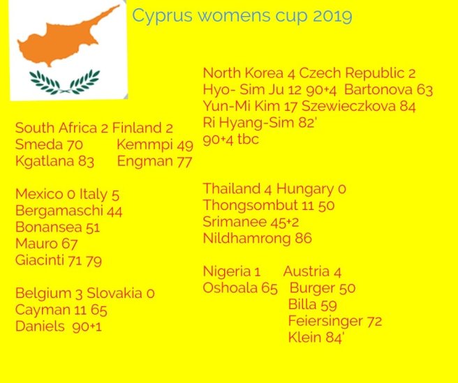 Womens internationals all today’s results from the She Believes Cup, Algarve cup, Cyprus Cup, Turkey Women’s Cup, Aphrodite Cup 28th February 2019 ~ rothwellk2701 ~ Leave a comment
