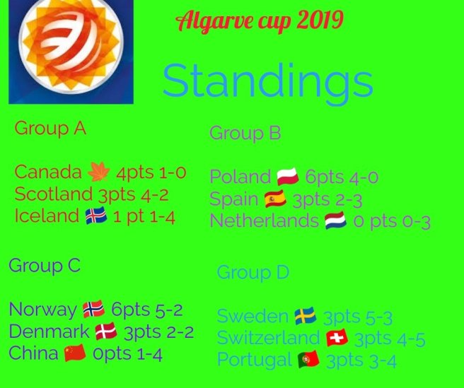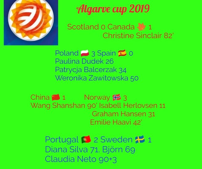 Womens international Results Friday March 1st Poland stun Spain with a 3-0 win as Portugal defeat Sweden with a 93rd minute winner in Algarve Cup action 1st March 2019 ~ rothwellk2701 ~ Leave a comment